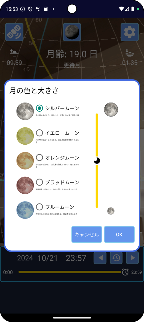 おまけで、月の色や大きさも変える機能も付けてみました。